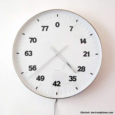 첨에는 저울인가? 하는 생각을 했지만, 이미지 하단에 "lifeclock" 라는 단어를 보고 먼가 한방 얻어 맞은것같았다. 이건 내 인생에서 현재 내 나이를 보여주는 시계였다. 한편으론 섬찍하면서 한편으론 아직 많이 남았구나. 아직 희망이 있구나.. 단지 숫자만 바꿨을뿐인 시계인데 많은 생각을 하게 만들었다.